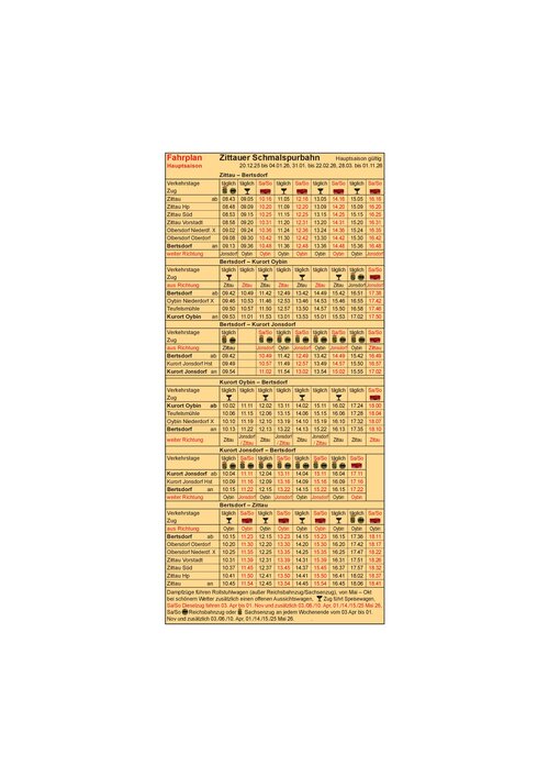 Již od roku 1890 jezdí výletníci a rekreati parním vlakem Žitavské úzkokolejky do romantických Žitavských hor (Zittauer Gebirge), nejmenšího německého středohoří. Prvním provozovatelem dráhy byla „Zittau-Oybin-Jonsdorfer-Eisenbahngesellschaft" (Žitavká-oybínská-janovská železniční společnost), zkráceně ZOJE. Lidový výklad této zkratky je „Zug ohne jegliche Eile“ (vlak bez jakéhokoliv spěchu). Pozvolným tempem kdysi jako nyní cestují nesčetní výletníci do pohoří. Kolem trati vzniklo díky vlaku mnoho hotelů a restaurací, ve kterých se už od počátku provozu zastavovali návštěvníci a kde si i dnes, v letním i zimním období, můžete užít hornolužickou pohostinnost. Výchozím bodem pro jízdu parním vláčkem do pohoří je nádraží v Žitavě. V blízkosti se nachází idylické historické centrum města, jedna z mnoha perel Horní Lužice. Úkorozchodné vlaky velkým obloukem objíždějí město a potom jedou podél rekreační oázy Olbersdorfského jezera. Po osmi kilometrech dorazí do nádraží Bertsdorf. O údržbu jeho historického vzhledu se starají členové sdružení Žitavských úzkorozchodných drah (Interessenverband der Zittauer Schmalspurbahnen) a Sasko-Hornolužické železniční společnosti (Sächsisch-Oberlausitzer Eisenbahngesellschaft). Nyní máte na vyběr, buď si uděláte výlet do lázeňského města Oybin (Oybín) popř. do lázeňského města Jonsdorf (Janov) anebo přestávku ve stylovém hotelu Bahnhof Bertsdorf. Pokud budete pokračovat do Oybinu, Vaše jízda končí přímo pod horou Oybin. Na jejím vrcholku se tyčí starý hradní a klášterní komlex. Přímo na nádraží byl ve staré vodárně zřízen pěkný apartmán, který zprostředkovává ubytovací služba „Zittauer Gebirge“. Výlet do lázní Jonsdorf byste si jistě neměli nechat ujít. Idylická obec s mnoha malebnými podstávkovými domy je ideálním výchozím bodem pro sportovní aktivity, klidné okamžiky anebo zajímavé objevy.